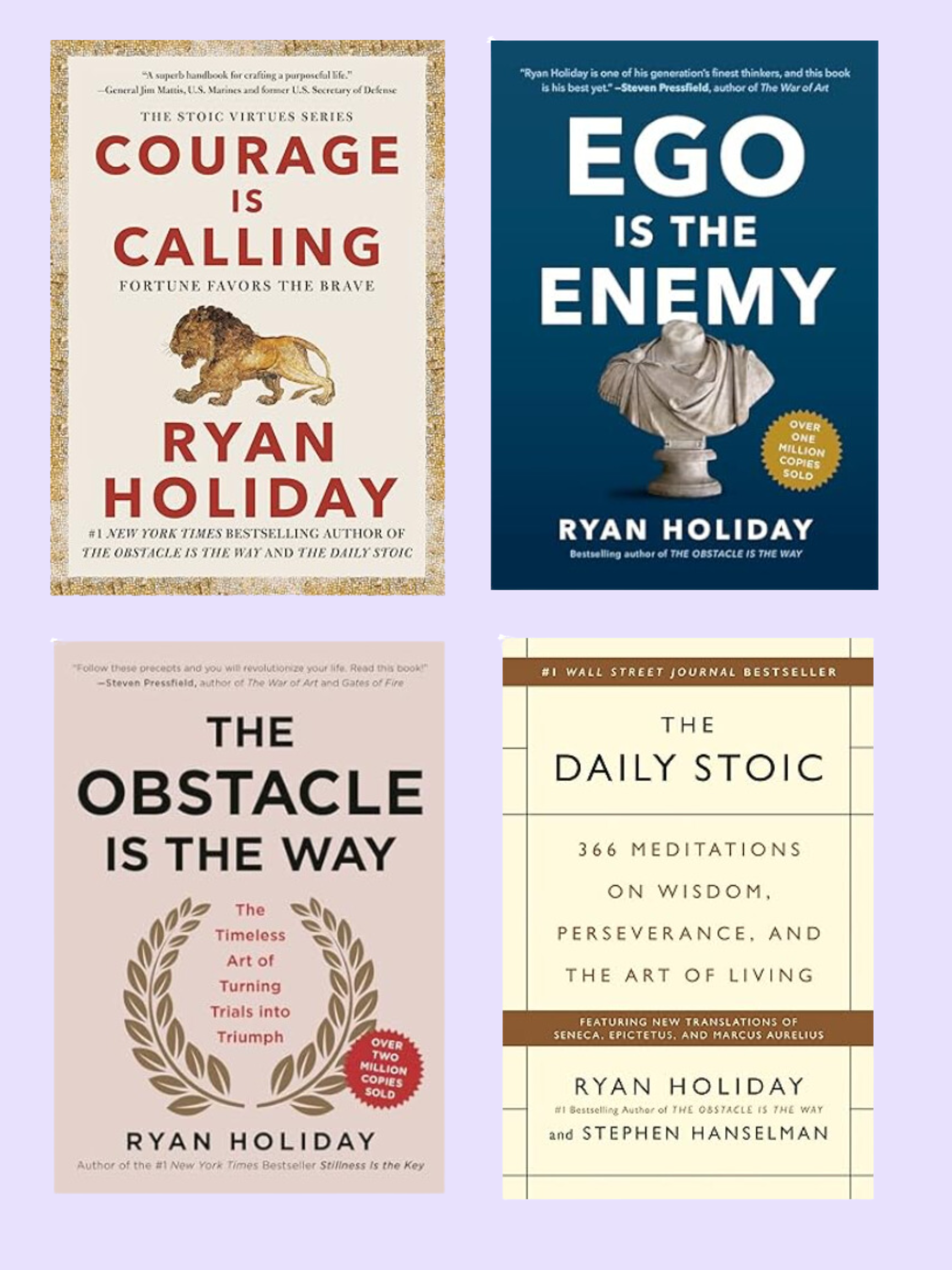 4. Reading - A few books I highly recommend reading are written by Ryan Holiday and in my opinion his books can really open up your mind and leave you feeling fulfilled by the end. A few I recommend are, The Obstacle Is The Way, EGO Is The Enemy, The Daily Stoic (Just finished this one!), and Courage is Calling.